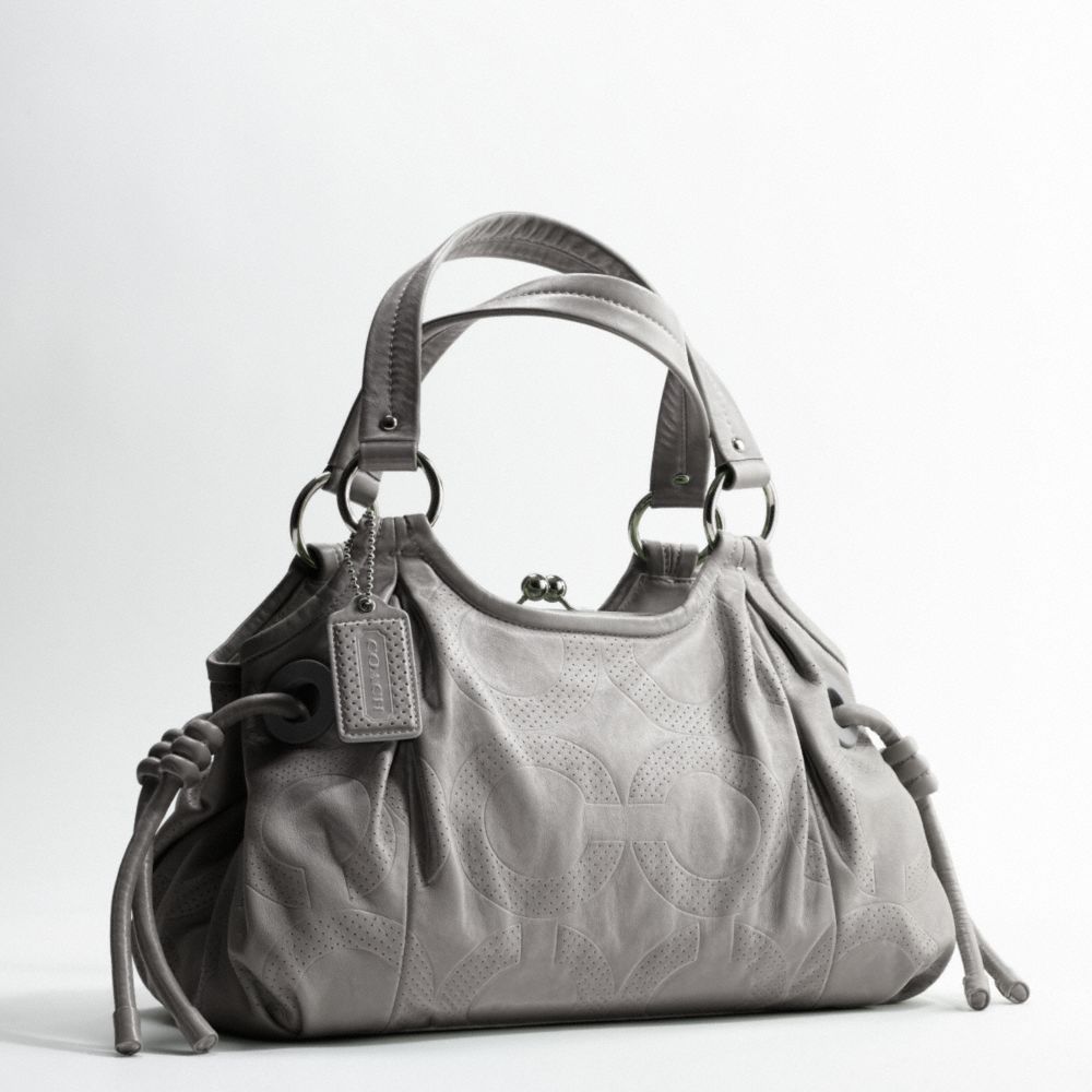 Among all the eye-catching adorable Coach Bags, I extremely like this one. This Coach New Op Art Satchel is made of Op-Art print linen Lurex blend fabric with soft gelato leather trim. This satchel is priced at $458, which is of course a little bit hefty for a bag that is only made from coated canvas and neither from patent fine leather nor the traditional signature fabric, although the canvas looks almost like a patent leather from afar.